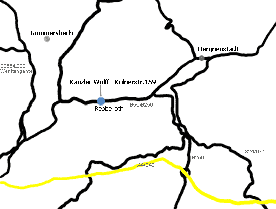 Direkt gegenüber der Tankstelle, Einfahrt in den Innenhof mit Mandantenparkplätzen.